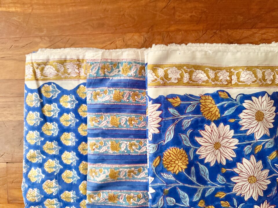 “Blue Garden”シリーズのブロックプリント生地が3柄そろって入荷しました。