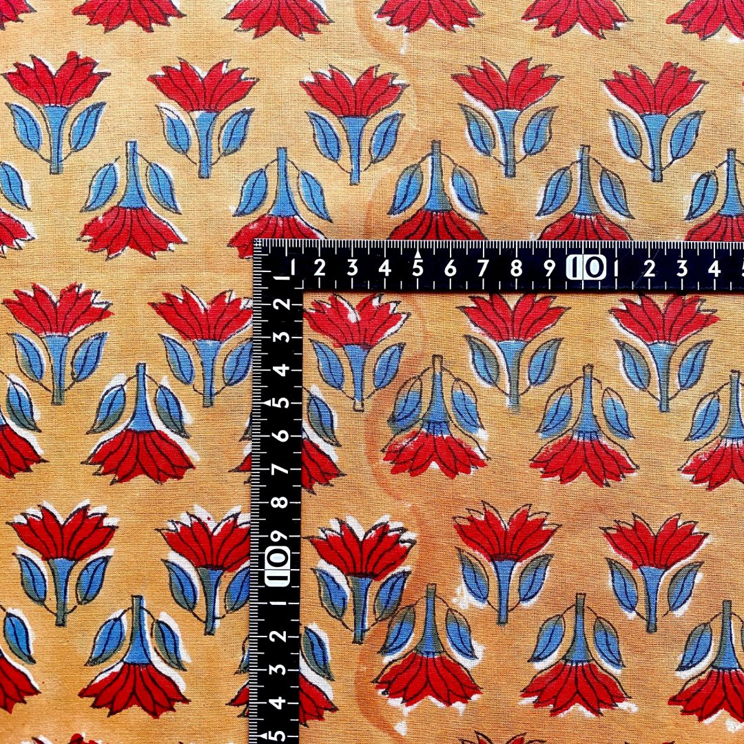 キャメルブラウン×赤い小花柄 - ブロックプリント生地 No.441