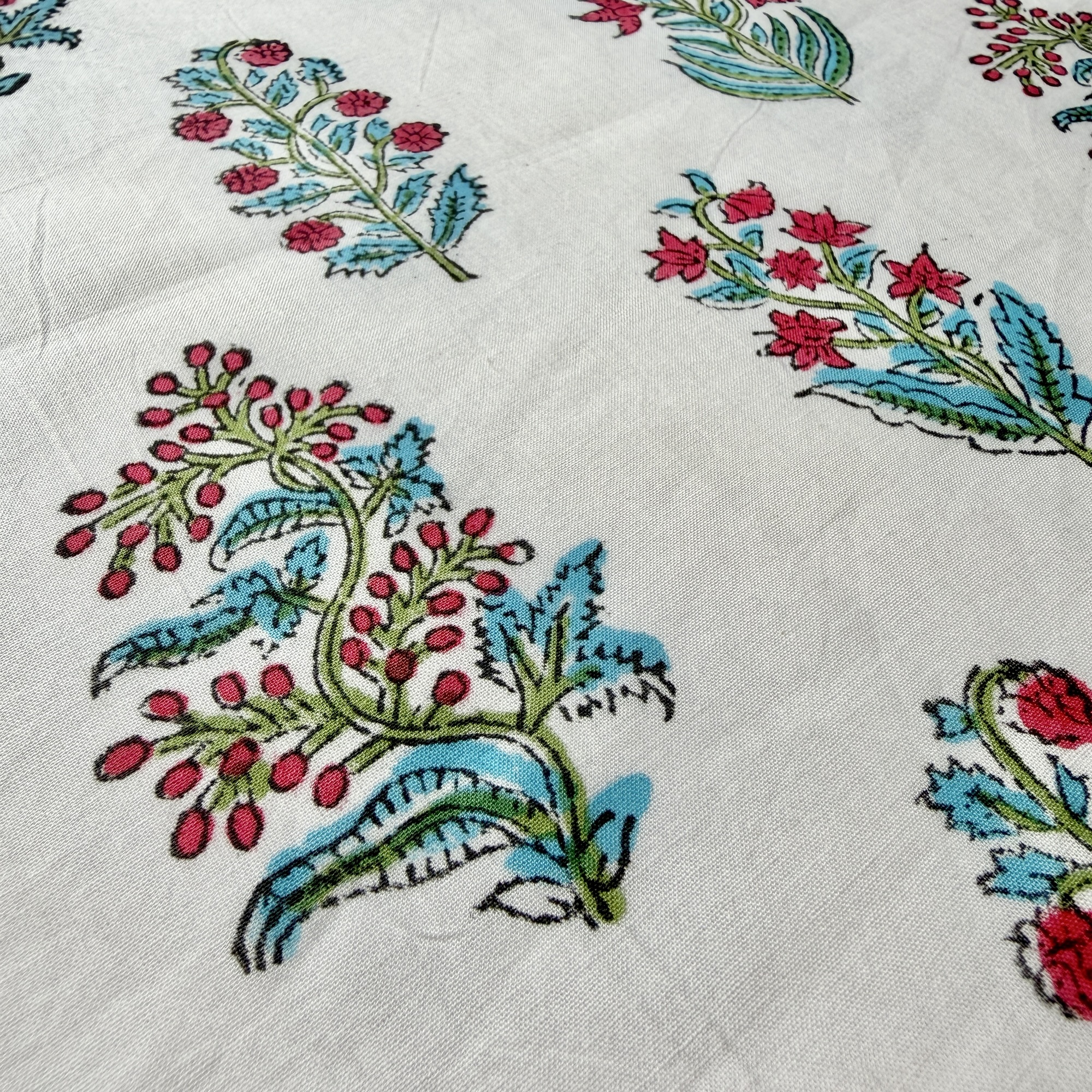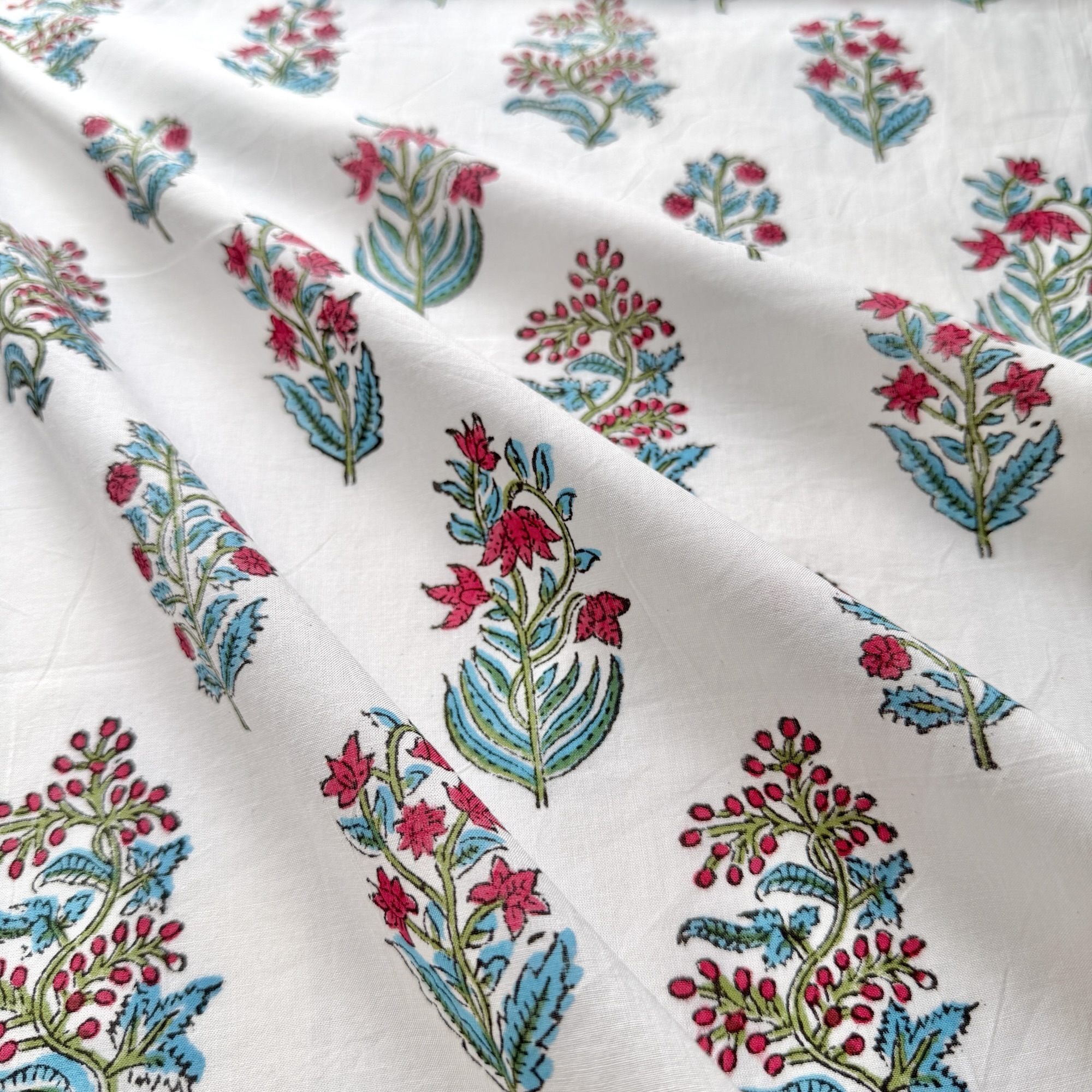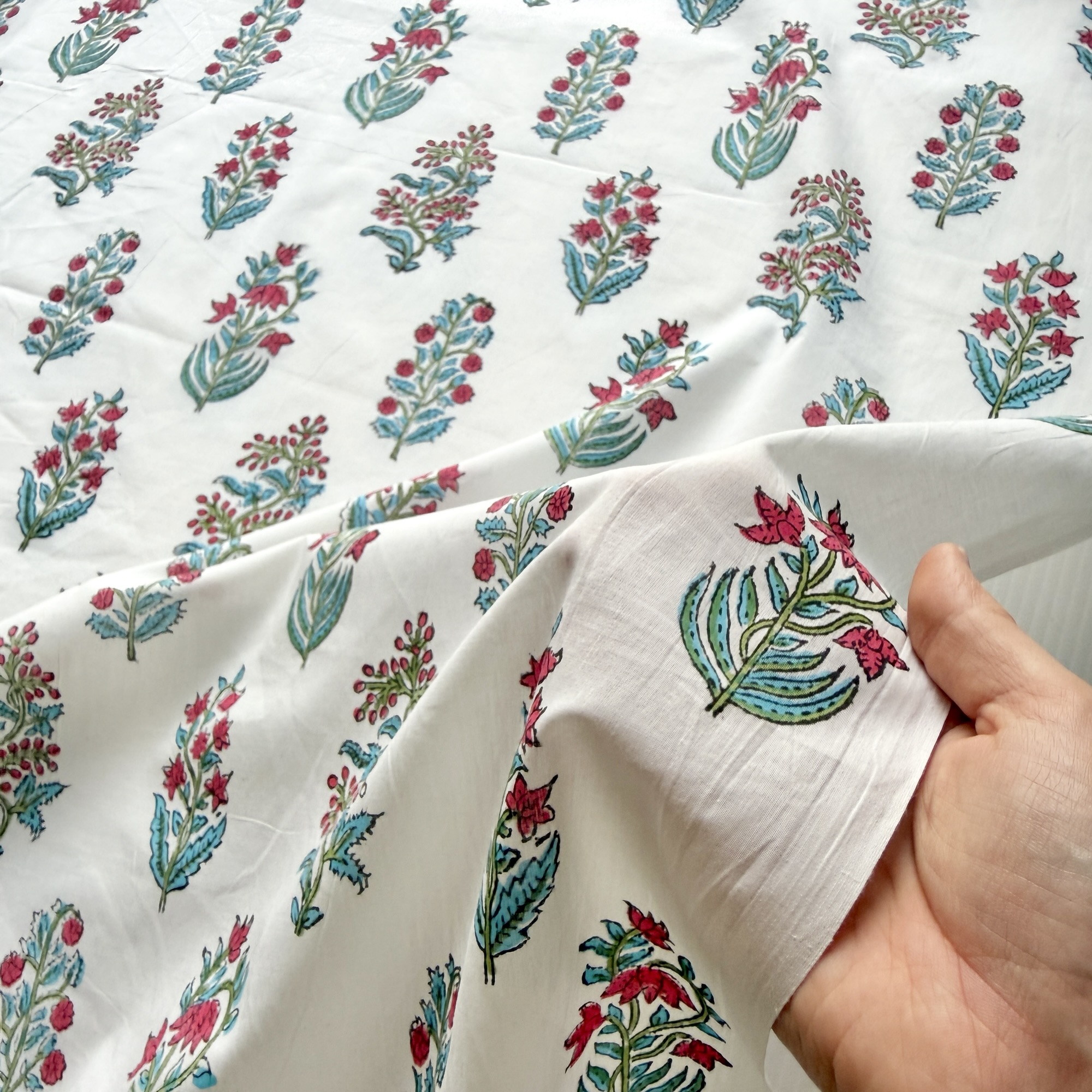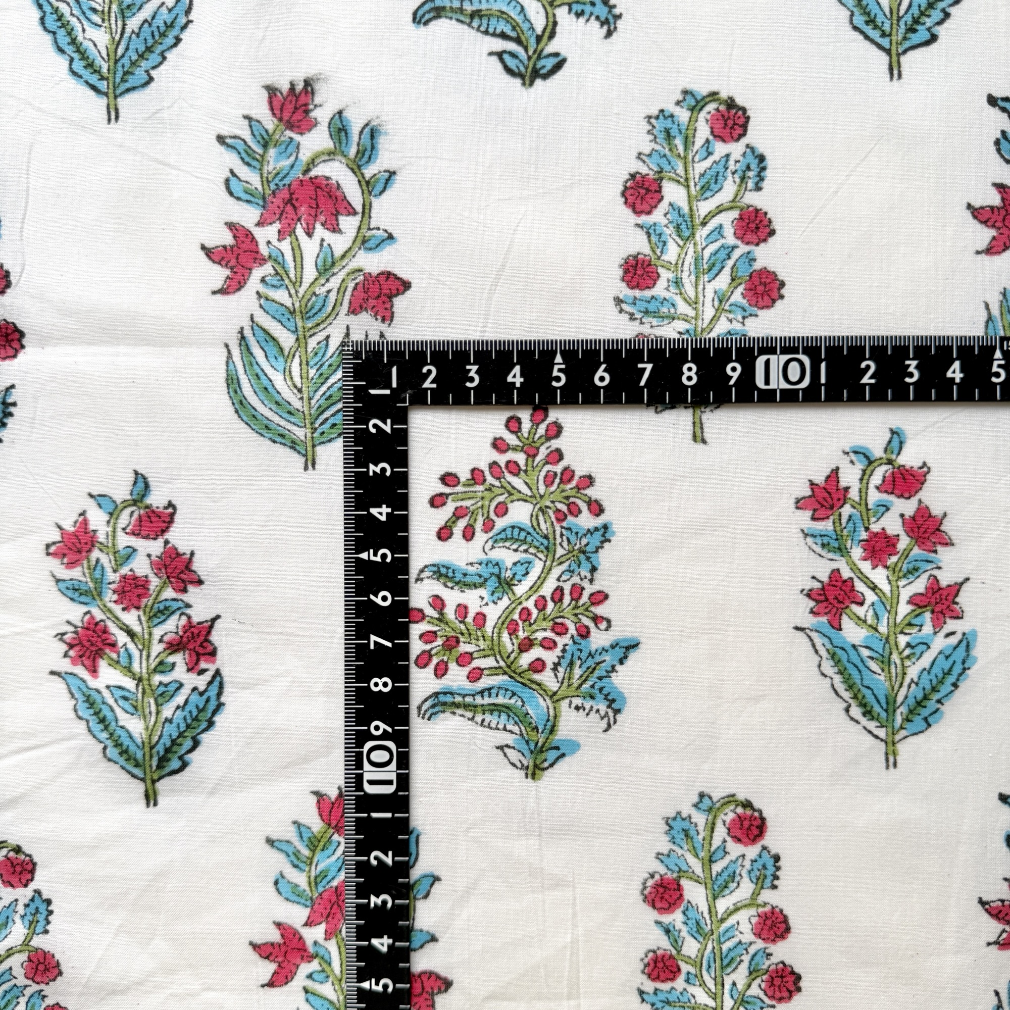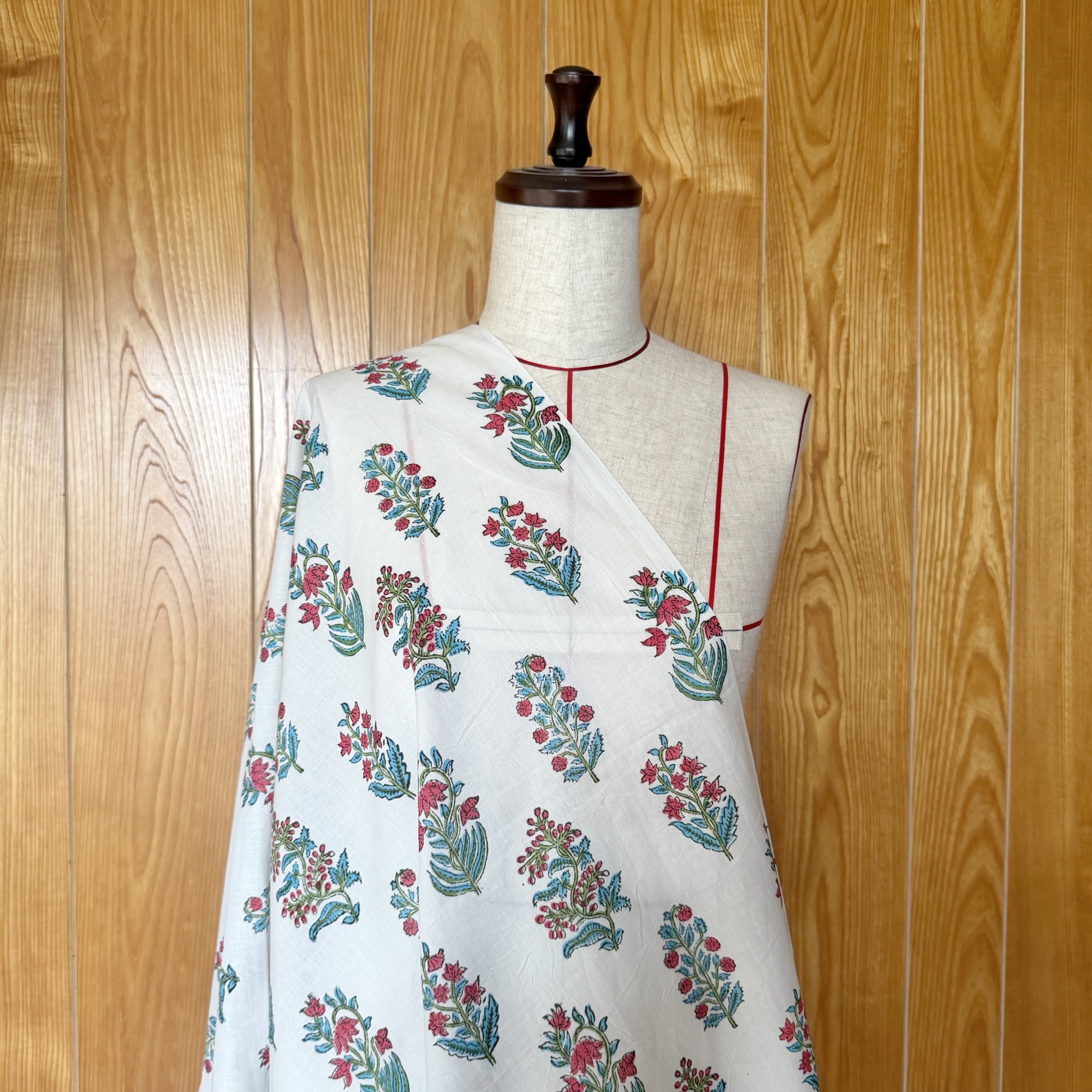 インドの職人が木版で一版ずつ染める伝統技法 ブロックプリント。手仕事ならではのゆらぎを楽しめる インド綿 の生地です。