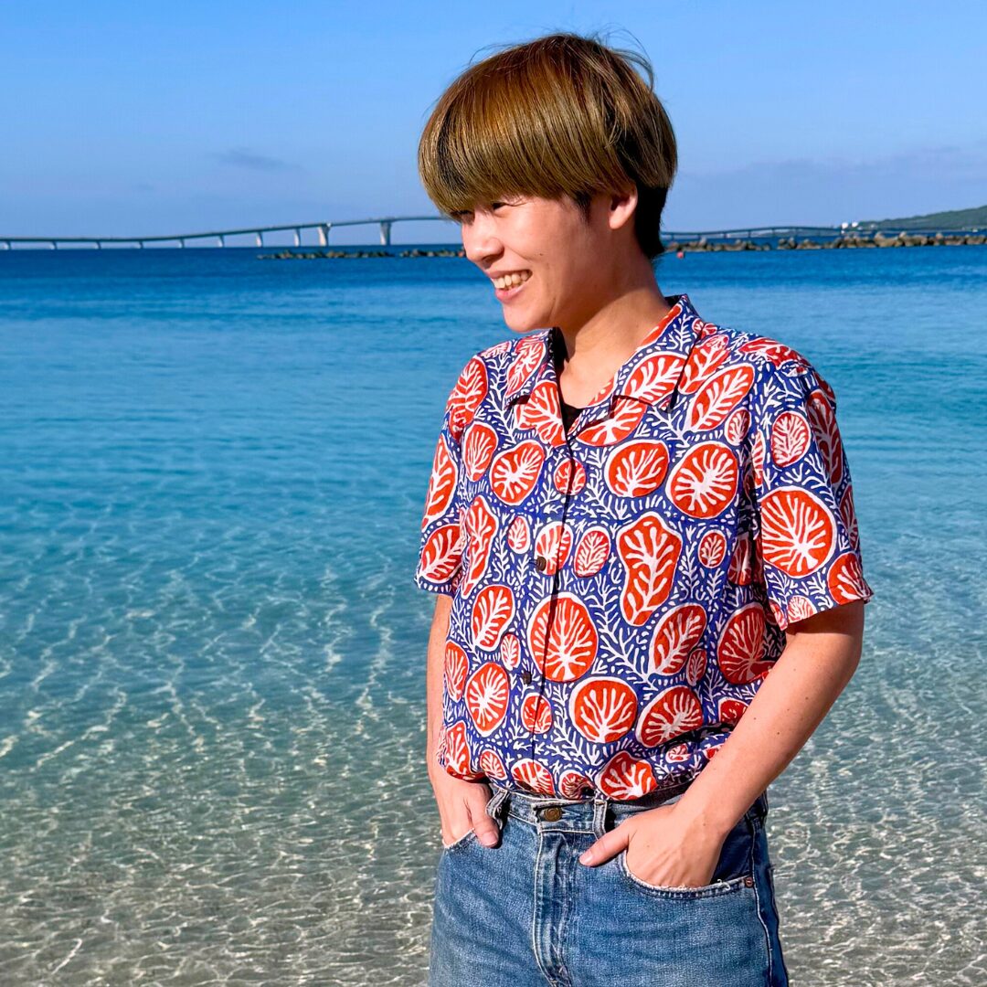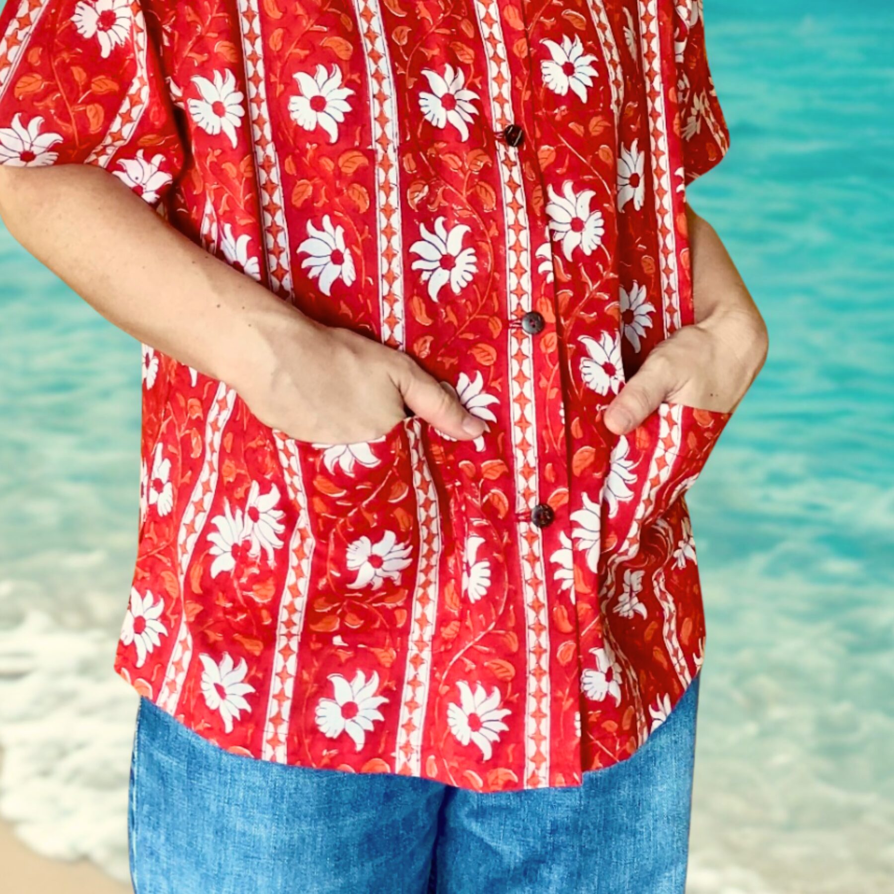インドの手仕事で仕立てた、ブロックプリントのアロハシャツ。