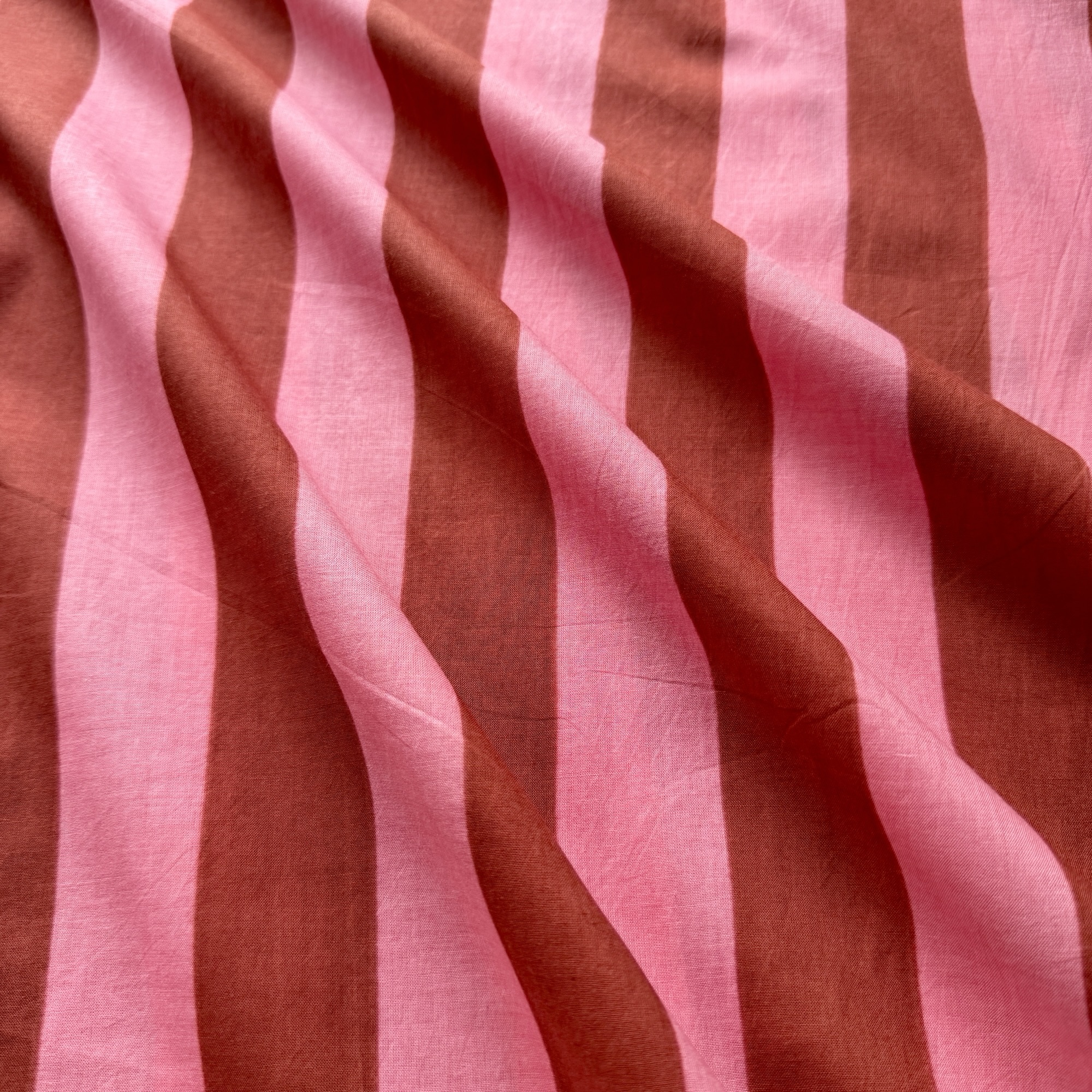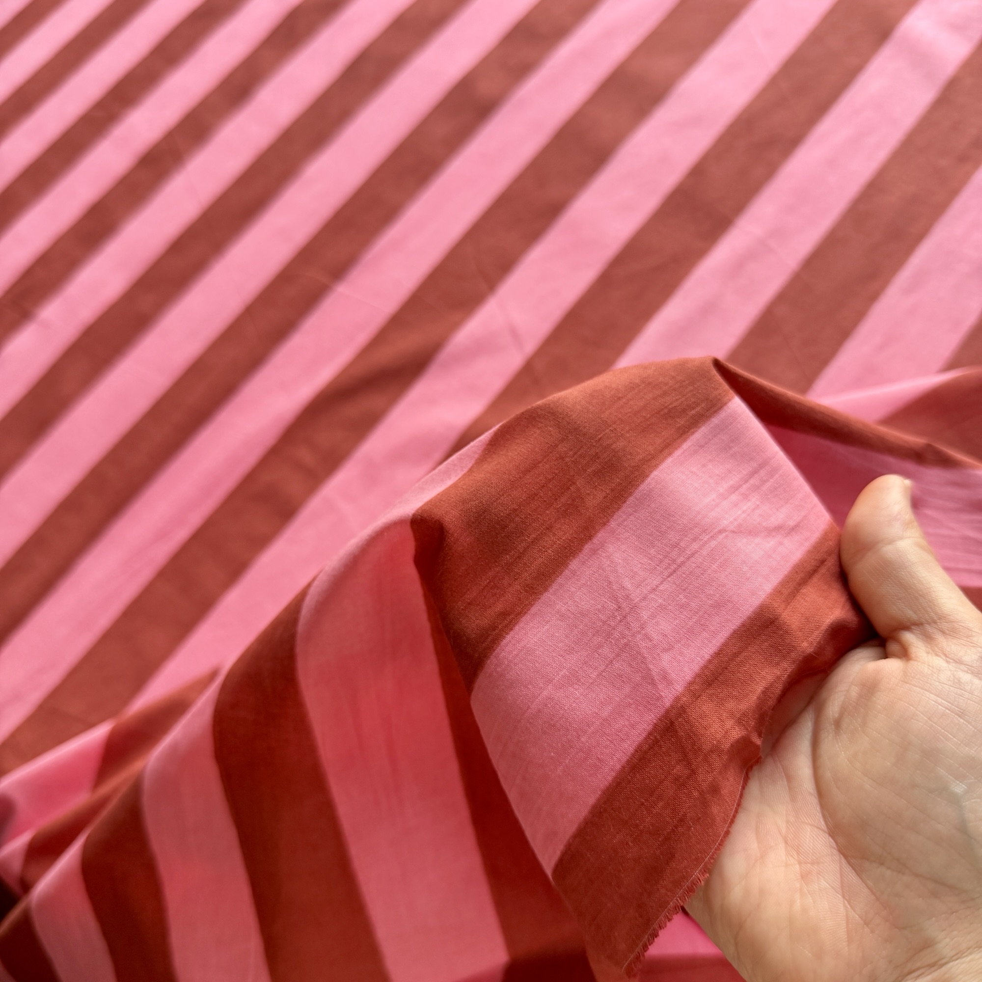 ピンク×ブラウンのストライプ- スクリーンプリント生地 No.475