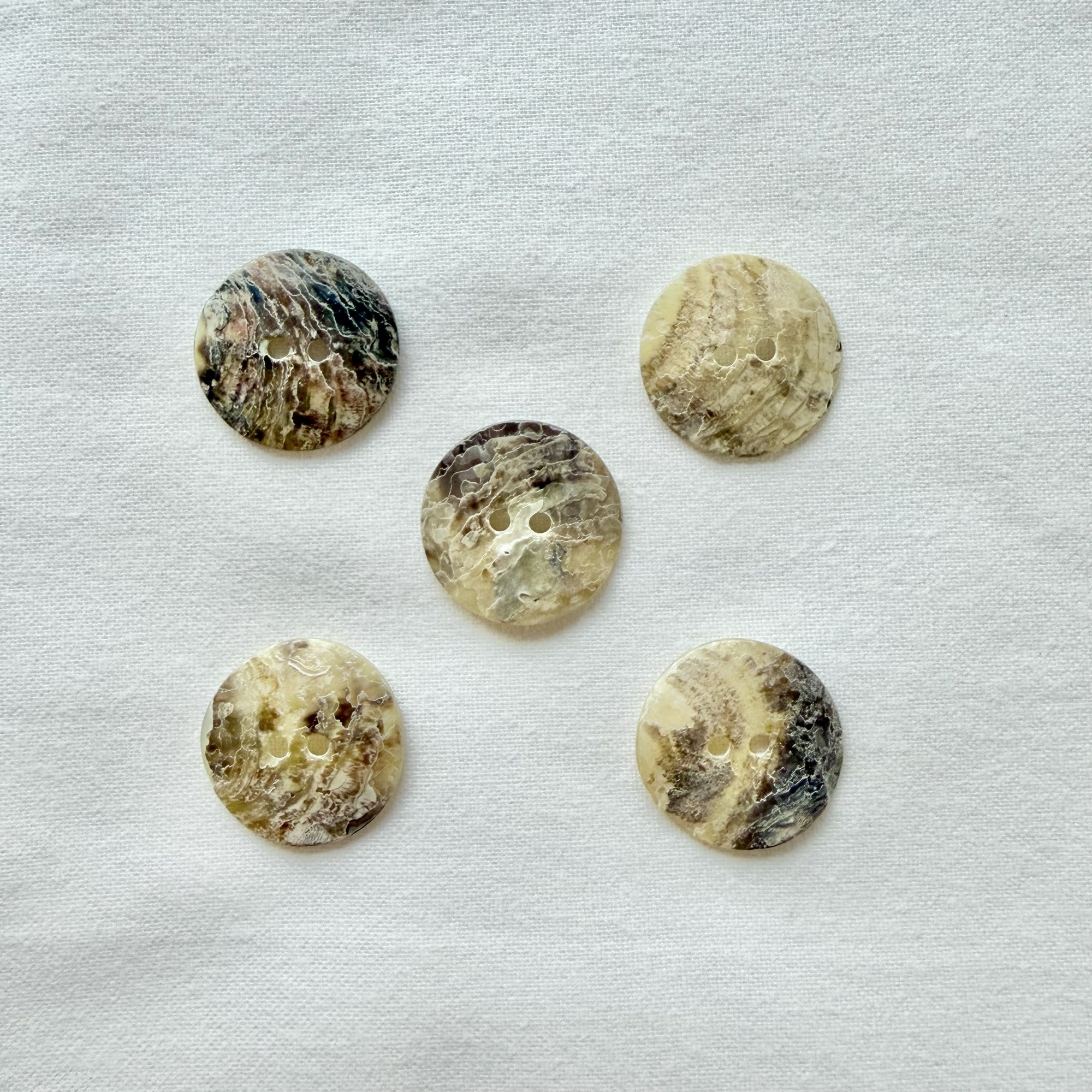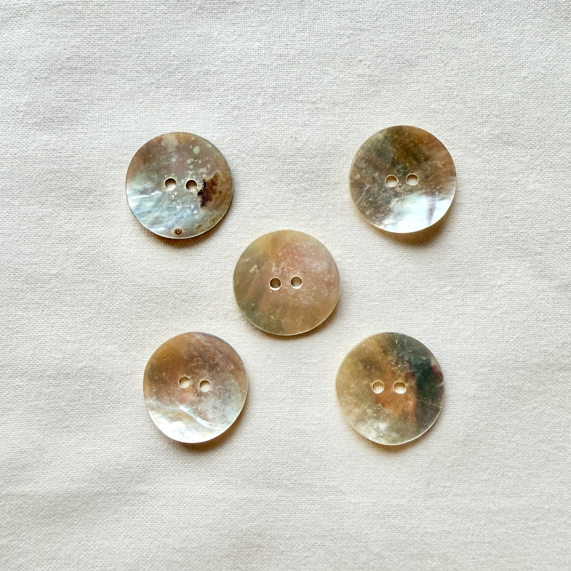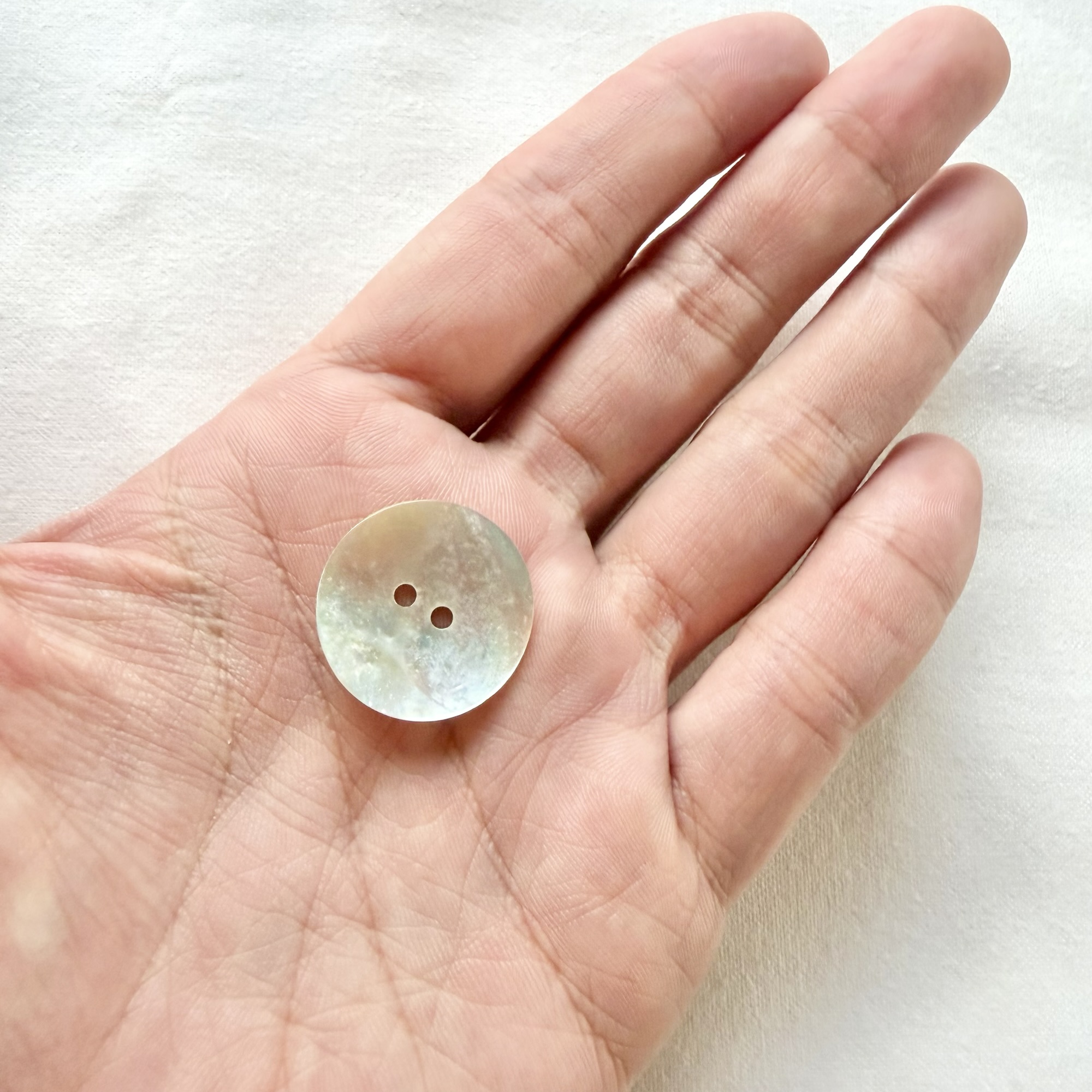 アコヤガイの貝殻から削り出した、天然の輝きを持つシェルボタン。